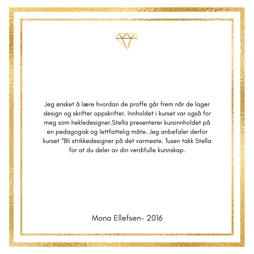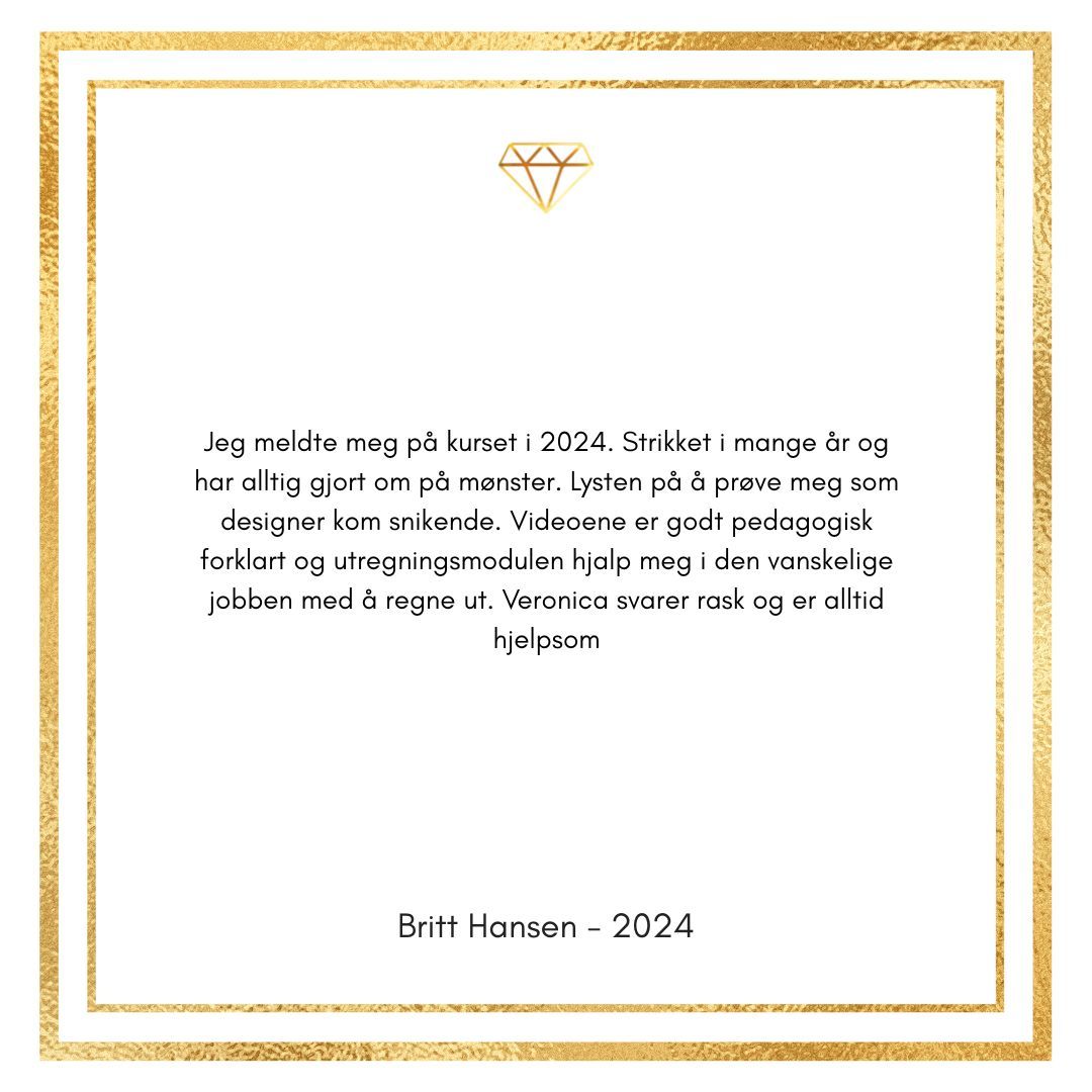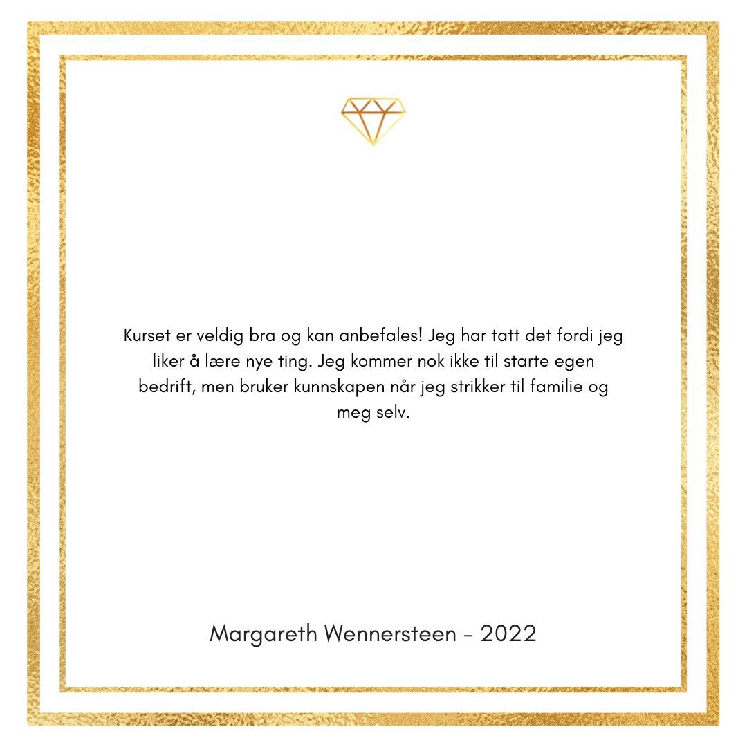 Kurset har gitt meg enormt mye kunnskap og glede for design med garn. Hver eneste dag lærer jeg noe nytt og da er det ekstra gøy å videreutvikle kurset slik at du også lærer enda mer.