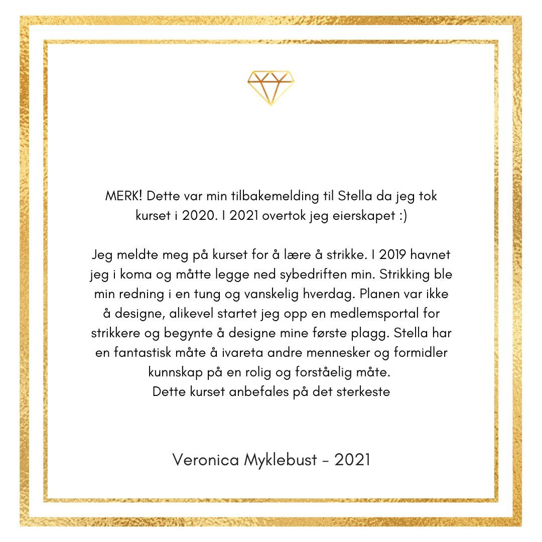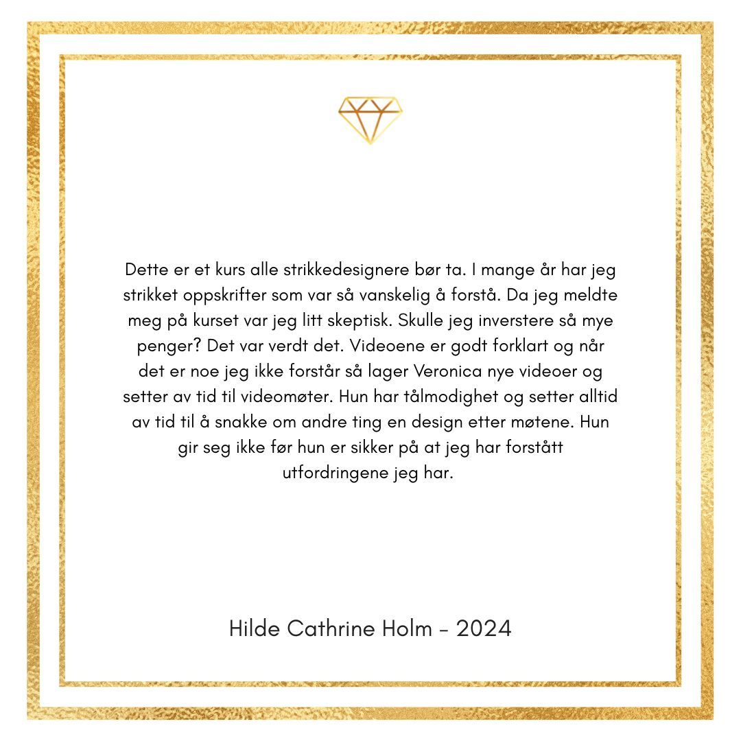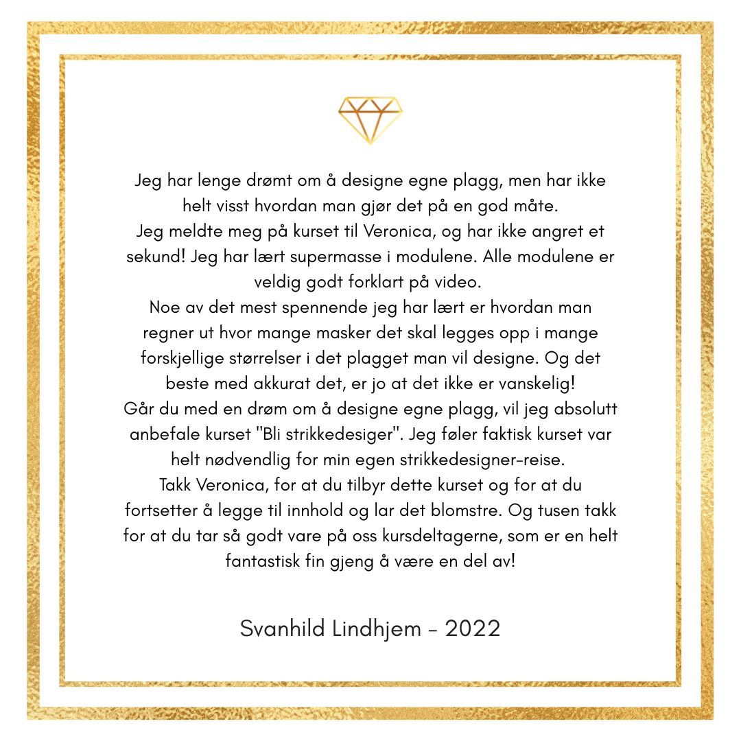 Kurset har gitt meg enormt mye kunnskap og glede for design med garn. Hver eneste dag lærer jeg noe nytt og da er det ekstra gøy å videreutvikle kurset slik at du også lærer enda mer.